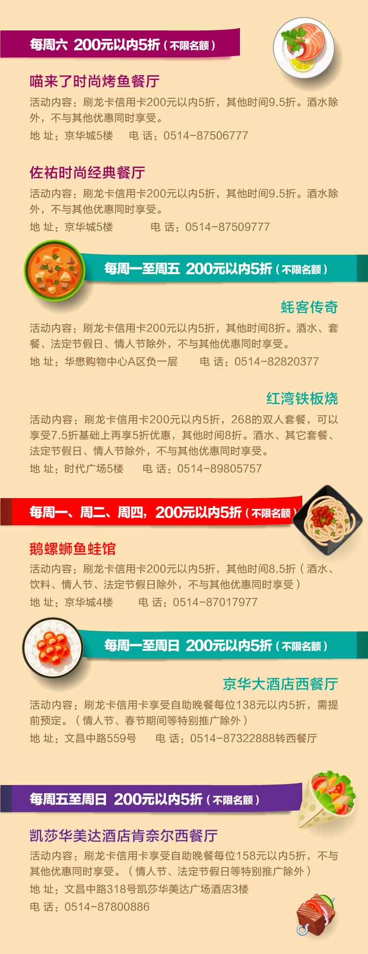 龙卡信用卡特惠2017年第1季(扬州)